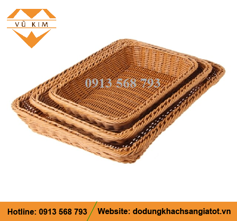 - Tên sản phẩm: Giỏ nhựa giả mây hình chữ nhật (khay vát), dùng trong Khách Sạn – Nhà Nghỉ